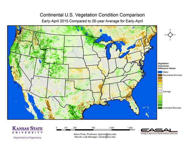 K-State’s Ecology and Agriculture Spatial Analysis Laboratory (EASAL) produces weekly Vegetation Condition Report maps. These maps can be a valuable tool for making crop selection and marketing decisions.