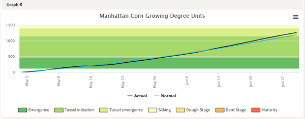 Degree days have been featured on the Kansas Mesonet page since the beginning. However, the reports were limited to the growing season (April-October) and to corn and sorghum. The new Degree Days page is designed to provide greater flexibility for our users, including options to select the time period and more built-in calculations. Because of the flexibility, it is somewhat more complicated than the old version. Here’s a run-down of the new features.